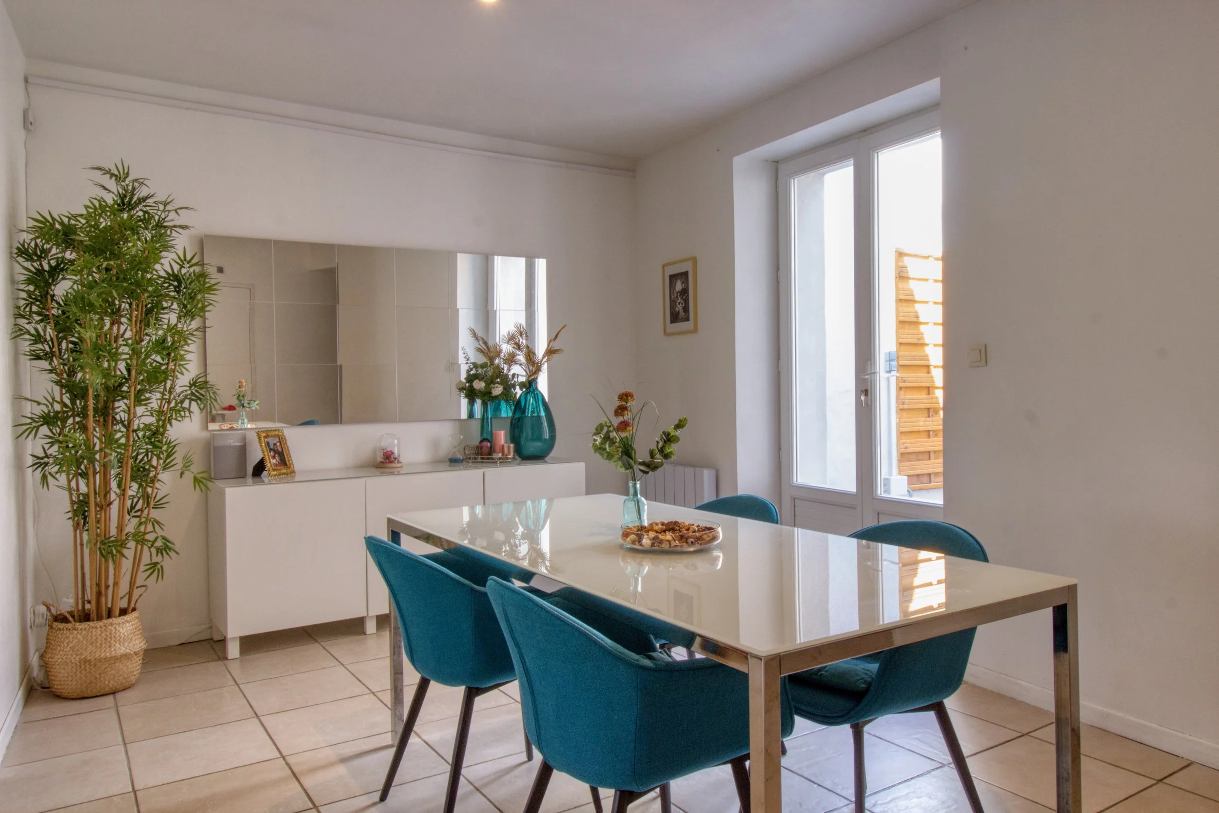 La terrasse a été complètement aménagée en un espace cosy et intimiste permettant de profiter d’un extérieur pour y manger et s’y détendre. Il y a également une partie couverte offrant en plus la possibilité d’abriter du matériel.